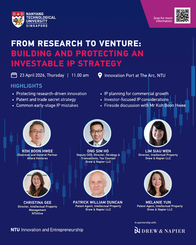 Join us for this MakanNight! Talk session as we explore how intellectual property shapes the journey from research to commercialisation. Learn how early IP decisions influence funding, valuation, ownership, and long-term growth, and gain practical insights on navigating patents, trade secrets, and investor expectations.